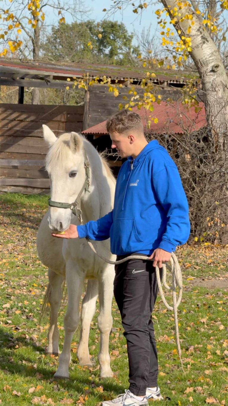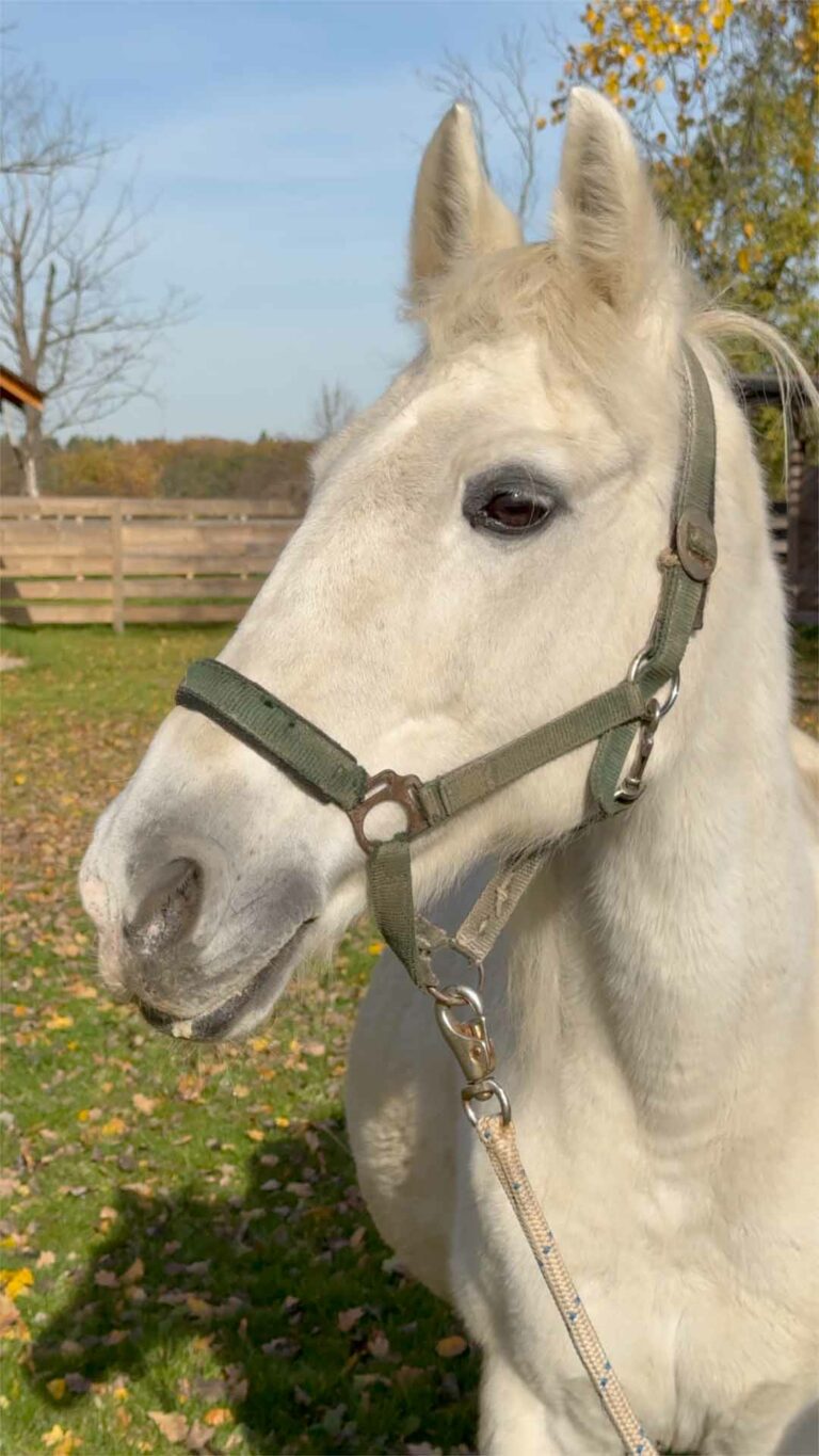 Jaskra jest starszą klaczą. Nie potrzebuje już wyścigów ani długich galopów. Potrzebuje opieki, czułości i pewności, że ktoś, choćby z daleka, myśli o niej każdego dnia.