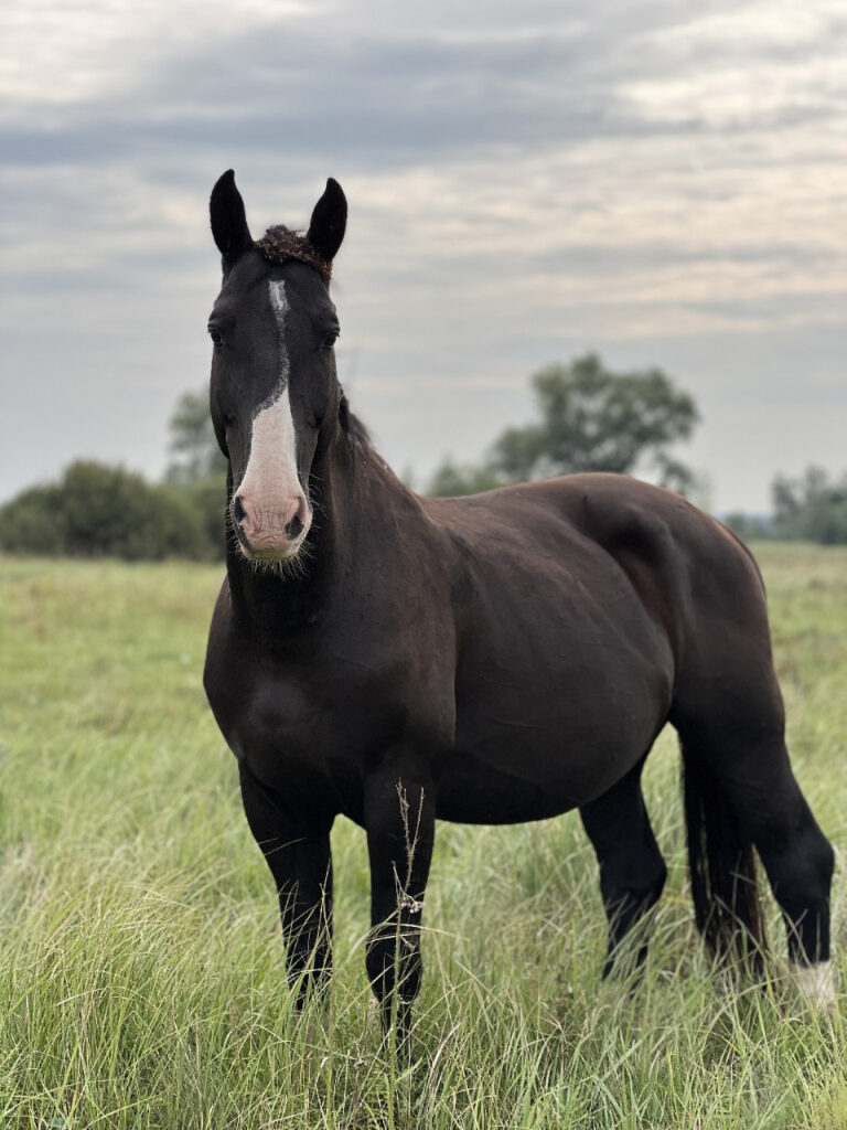 Portos jest z nami od 14 lat. Mimo że zmaga się z syndromem Wobblera, nie stracił nic ze swojej siły ducha. To on jest sercem i przewodnikiem stada – zawsze pewny siebie, skupia wokół siebie innych i daje im poczucie bezpieczeństwa.